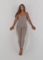 cross back jumpsuit in beige