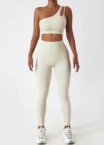 Double Strap One Shoulder Cut Out Back Crop Top In beige