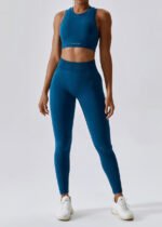 Double Strap One Shoulder Cut Out Back Crop Top In grey