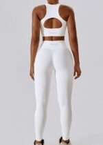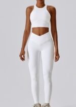 Double Strap One Shoulder Cut Out Back Crop Top In beige