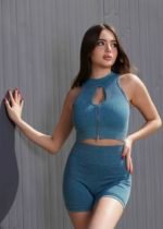 Meta keyhole Zip Crop Top In Teal